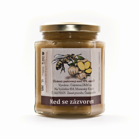 Med se zázvorem obsahuje 98% pastovaného medu a 2% lyofilizovaného zázvoru.
