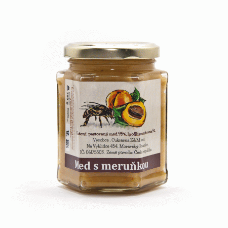 Med s meruňkou je vyroben 100% z přírodních produktů. Obsahuje 95% pastovaného medu a 5% lyofilizova...