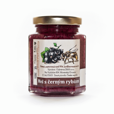 Med s černým rybízem je vyroben 100% z přírodních produktů. Obsahuje 95% pastovaného medu a 5% lyofi...