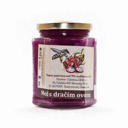 Med s dračím ovocem je vyroben 100% z přírodních produktů. Obsahuje 95% pastovaného medu a 5% lyofil...