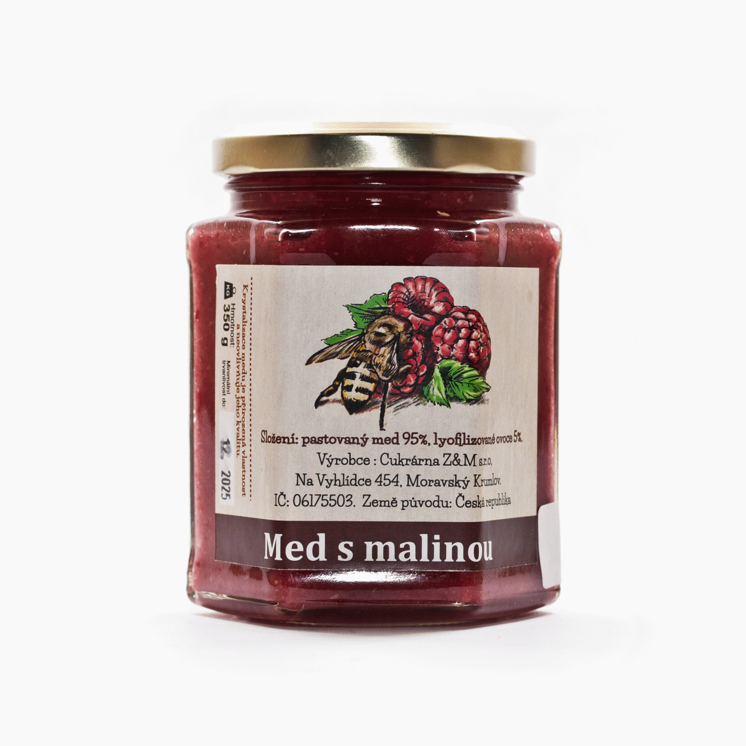 Maliny jsou bohaté na vitamín C, vlákninu a antioxidanty, které podporují imunitní systém a chrání buňky před poškozením. Obsahují také vitamín K a mangan, které přispívají ke zdraví kostí a metabolismu. Náš med s malinami je vyroben 100% z přírodních produktů. Obsahuje 95% pastovaného medu a 5% lyofilizovaných malin. Sytě červená barva a navinulá chuť malin doplněná sladkostí medu. Díky ovoci med zhoustne, ale zůstává dobře roztíratelný.