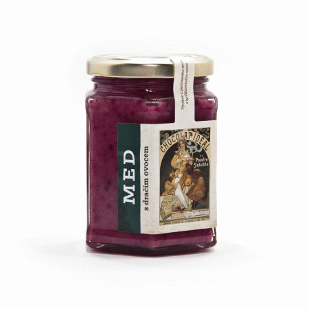 Med s dračím ovocem je vyroben 100% z přírodních produktů. Obsahuje 95% pastovaného medu a 5% lyofil...