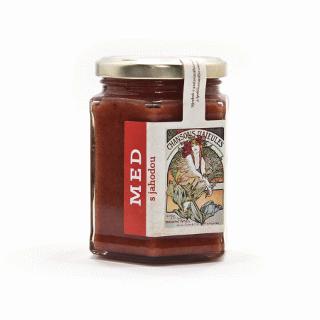 Med s jahodami je vyroben 100% z přírodních produktů. Obsahuje 95% pastovaného medu a 5% lyofilizova...