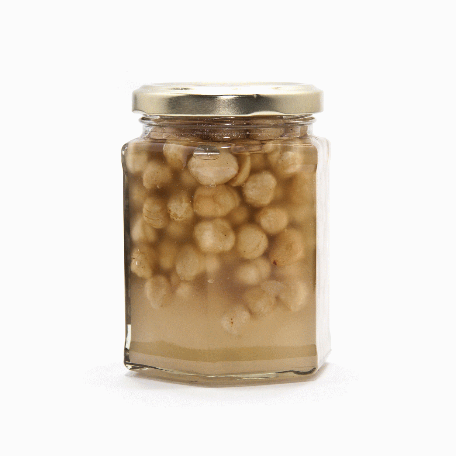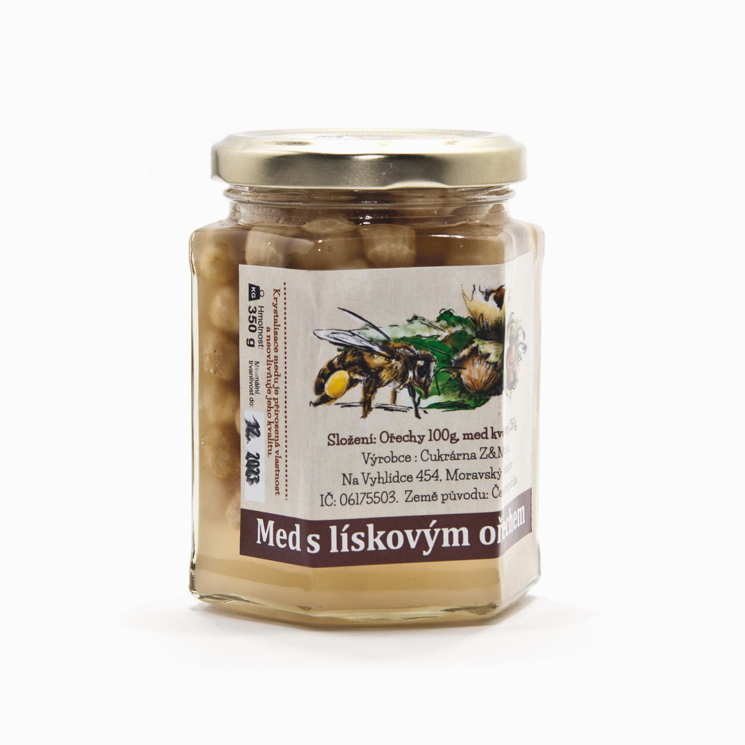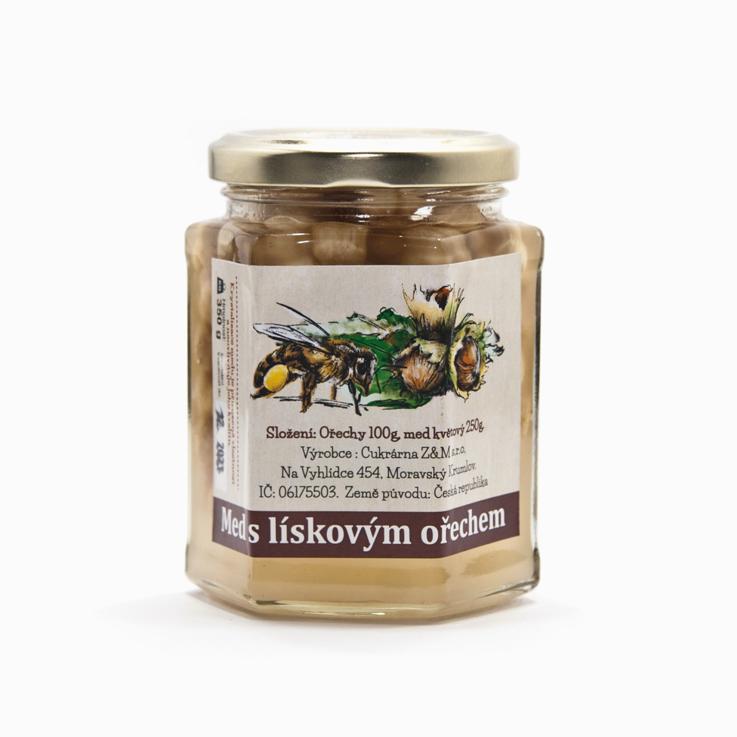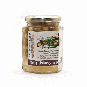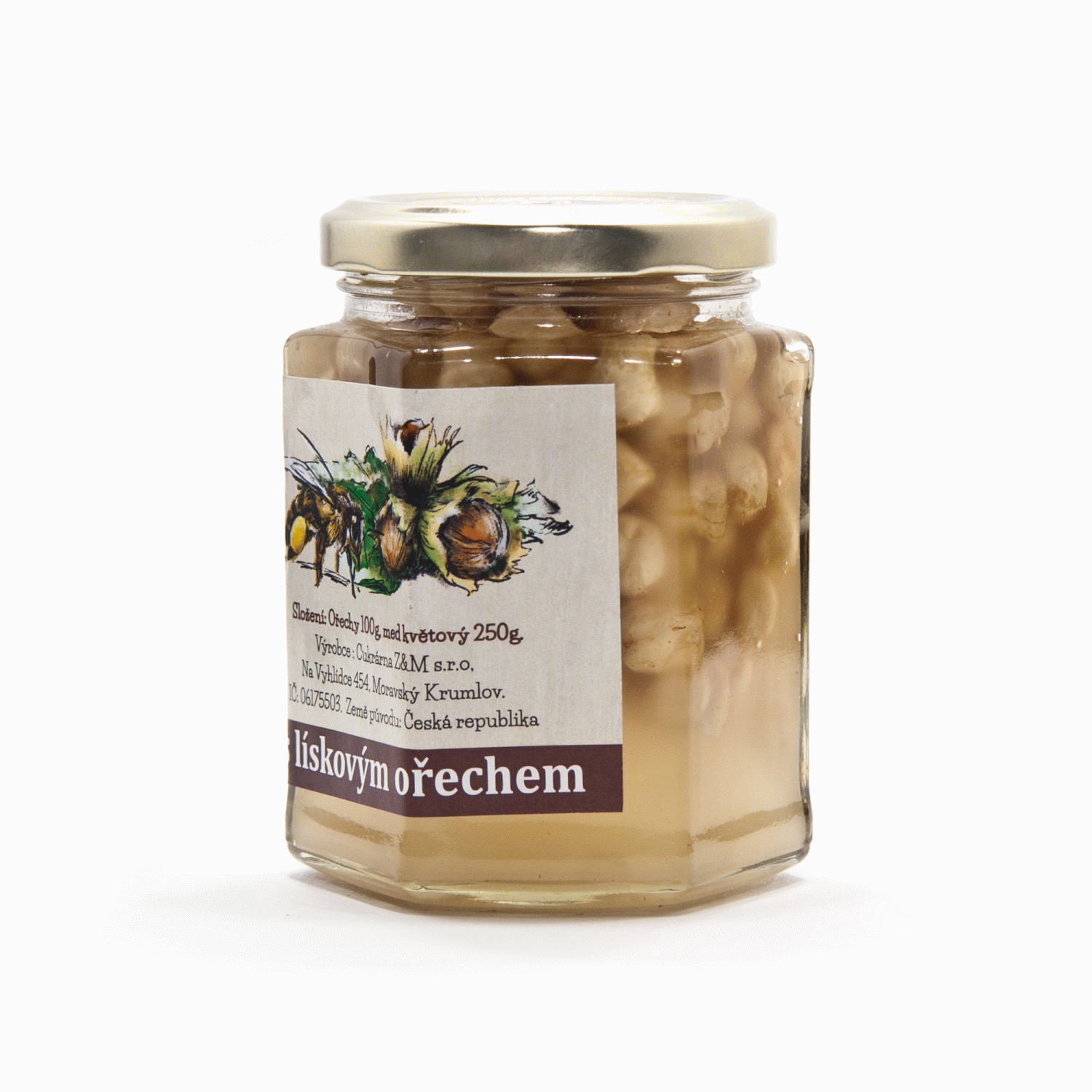Akátový med s líkovými ořechy. Sladké křupavé oříšky s lahodným medem.