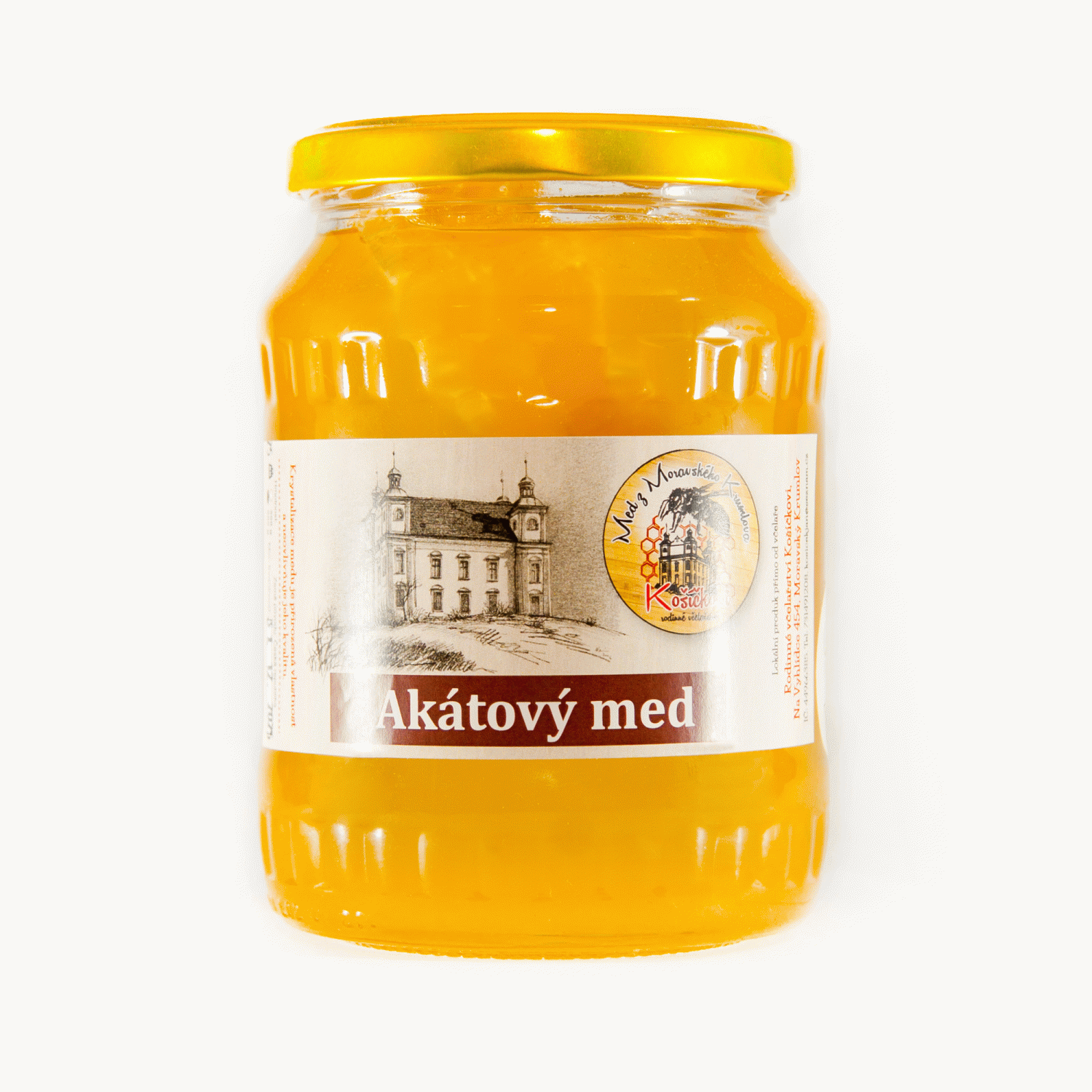 Náš akátový med pochází z květů v okolí našich včelínů v Moravském Krumlově. Vyznačuje se velmi světlou, až průzračnou barvou se zlatavým odleskem. Je to med lahodné chuti, která se vám rozplyne jazyku. Zvláštností akátového medu je odolnost proti krystalizaci, a proto zůstává vždy snadno roztíratelný. Akátový med s pláství obsahuje kromě medu část včelí plástve.