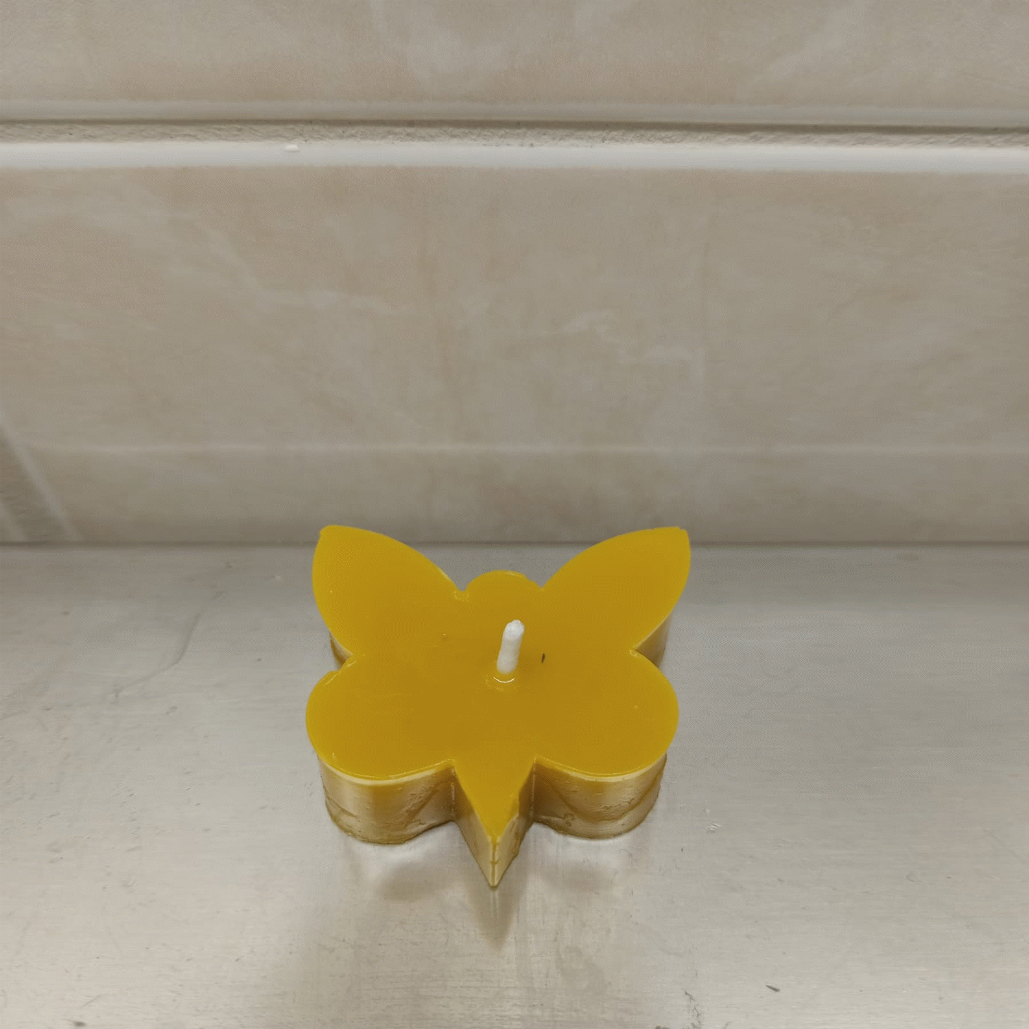 Svíčka ve tvaru motýla, kterou sami ručně vyrábíme z našeho 100% včelího vosku. Ideální jako medový dárek pro vaše blízké, kamarády, partnery atd.
